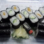 亀寿司 - かっぱ巻、おしんこ巻、のり巻(かんぴょう)を持ち帰りで(各¥800)